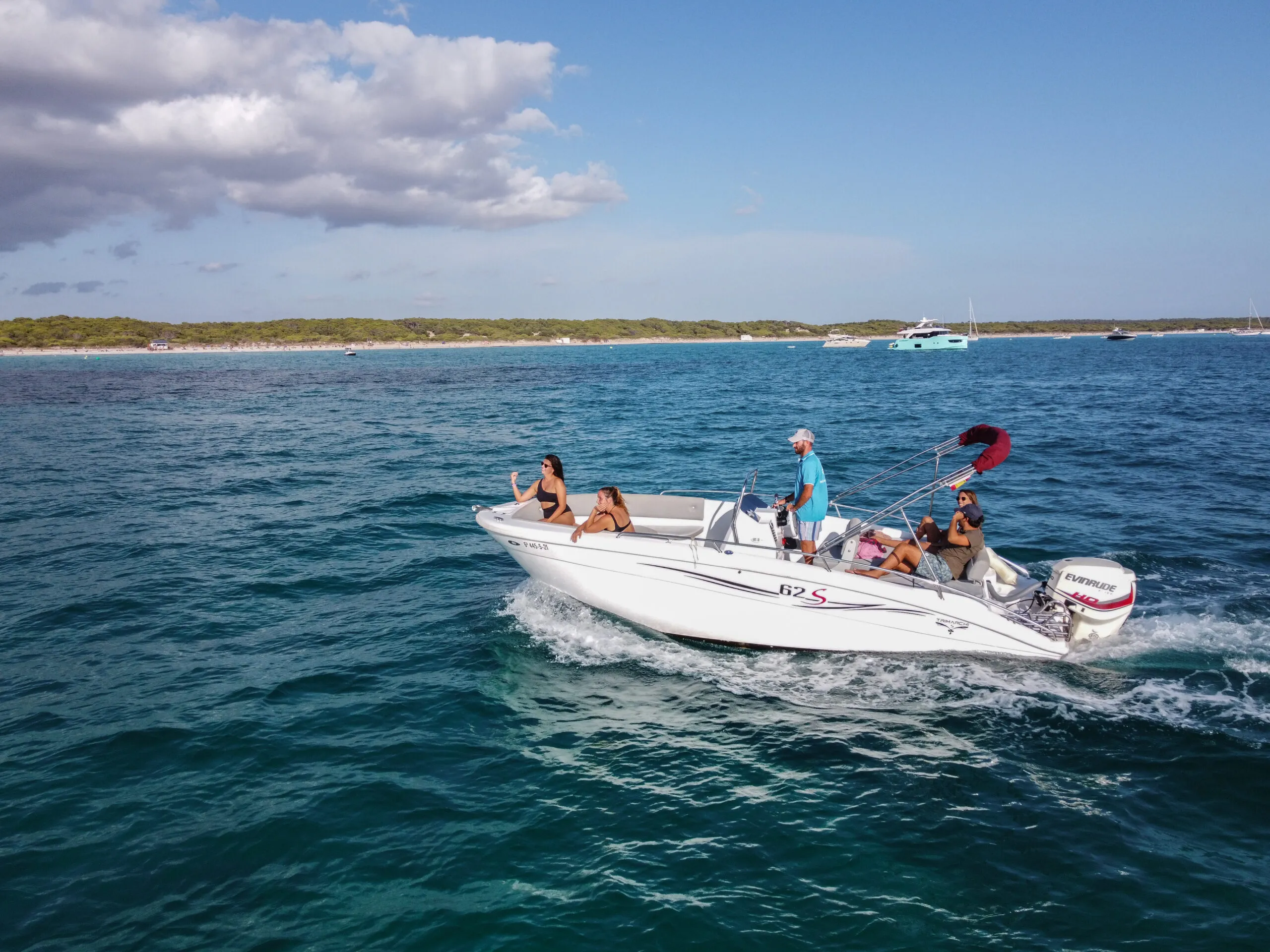 Para los patrones experimentados proponemos el alquiler de la nueva embarcación rígida Trimarchi 62 S Open, que permite navegar tanto la costa de la Colonia de Sant Jordi en Mallorca como visitar el Parque Nacional de Cabrera.